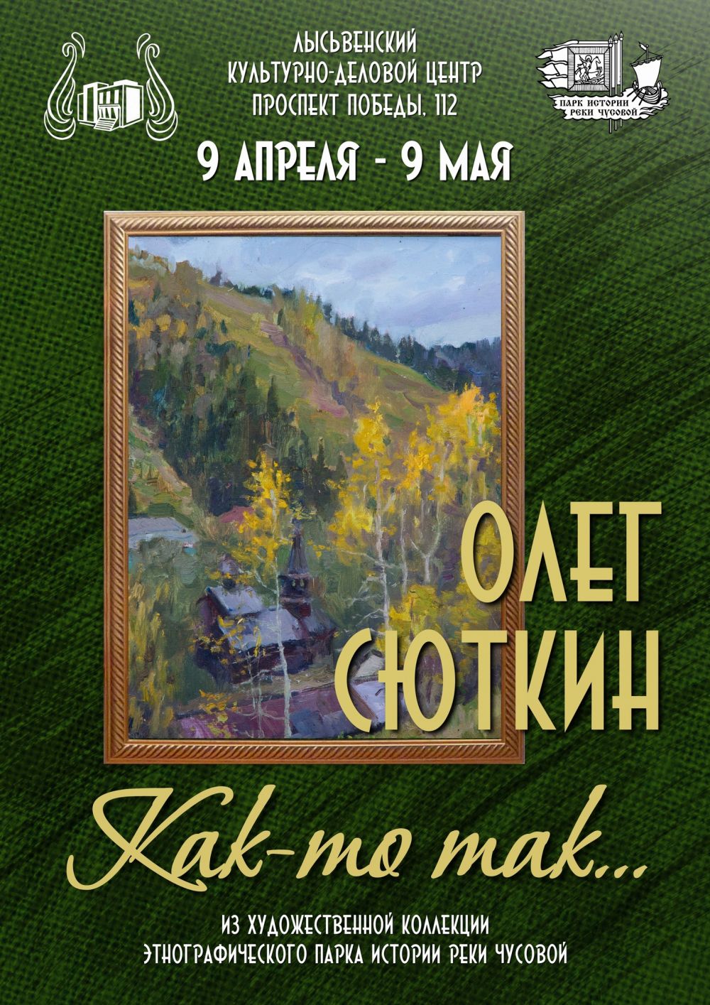 В фойе первого этажа Лысьвенского культурно — делового центра продолжает свою работу выставка пермского художника Олега Александровича Сюткина "Как то так..." из художественной коллекции Этнографического парка реки Чусовой.