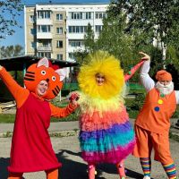 Яркие, весёлые герои — Карамелька, Кукарямба и Гном-весельчак сегодня поздравили воспитанников детского сада с Днём знаний.