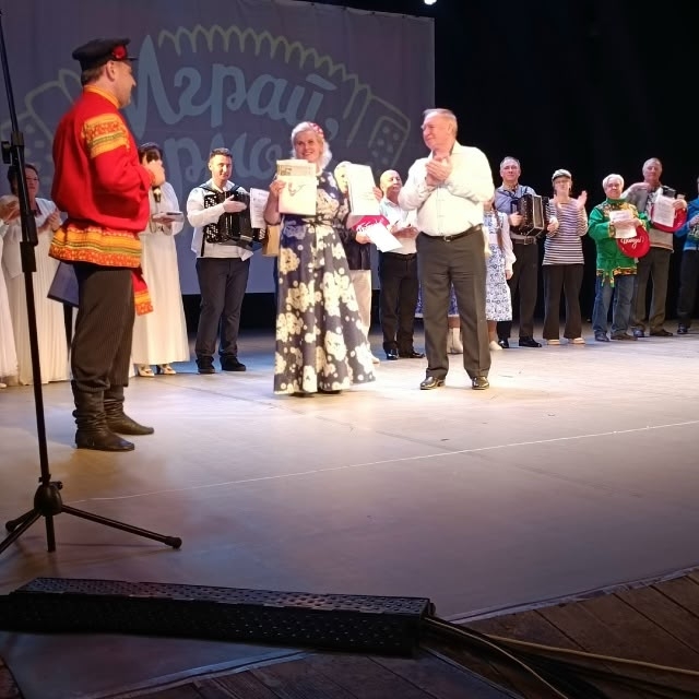 А в зрительном зале блистали участники фестиваля — гармонисты и баянисты, ни много ни мало 11 человек, местные и приезжие, один другого краше, а после в подарок гостям фестиваля выступление вокального ансамбля «Воскресение» г. Пермь.