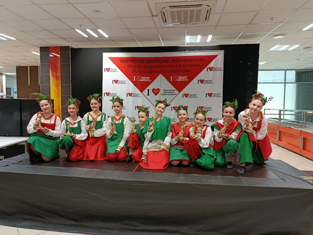 Средняя группа Народного коллектива эстрадного танца «Галактика» вышла на сцену — и… взяла своё. Композиции «Авсень-коляда», «Все мы немножко Емели», «Аука» — и результат безоговорочный: лауреаты I степени!
