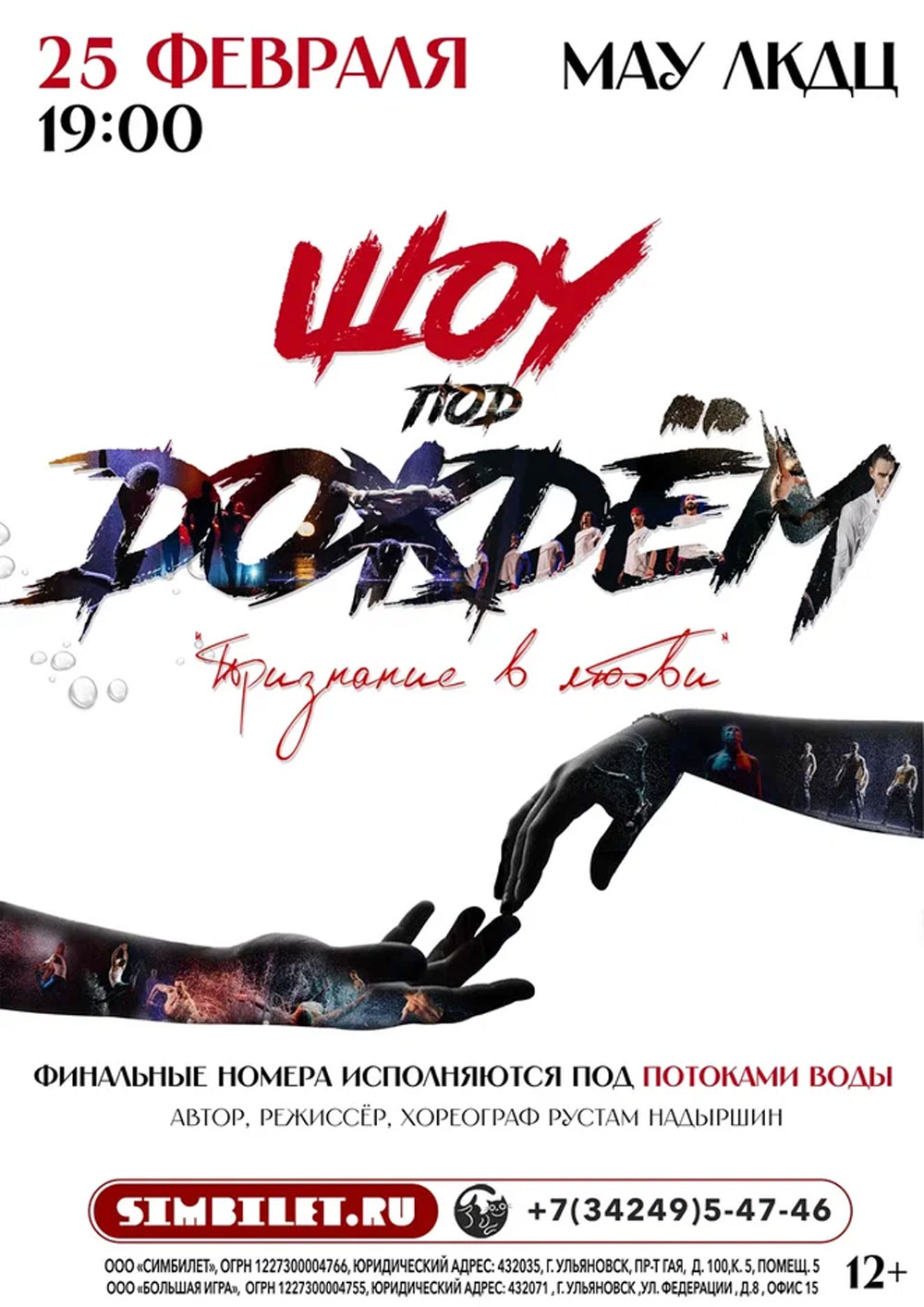 Билеты по ссылке: https://simbilet.ru/shows/3814.sou-pod-dozdem-v-priznanie-v-liubvi-31