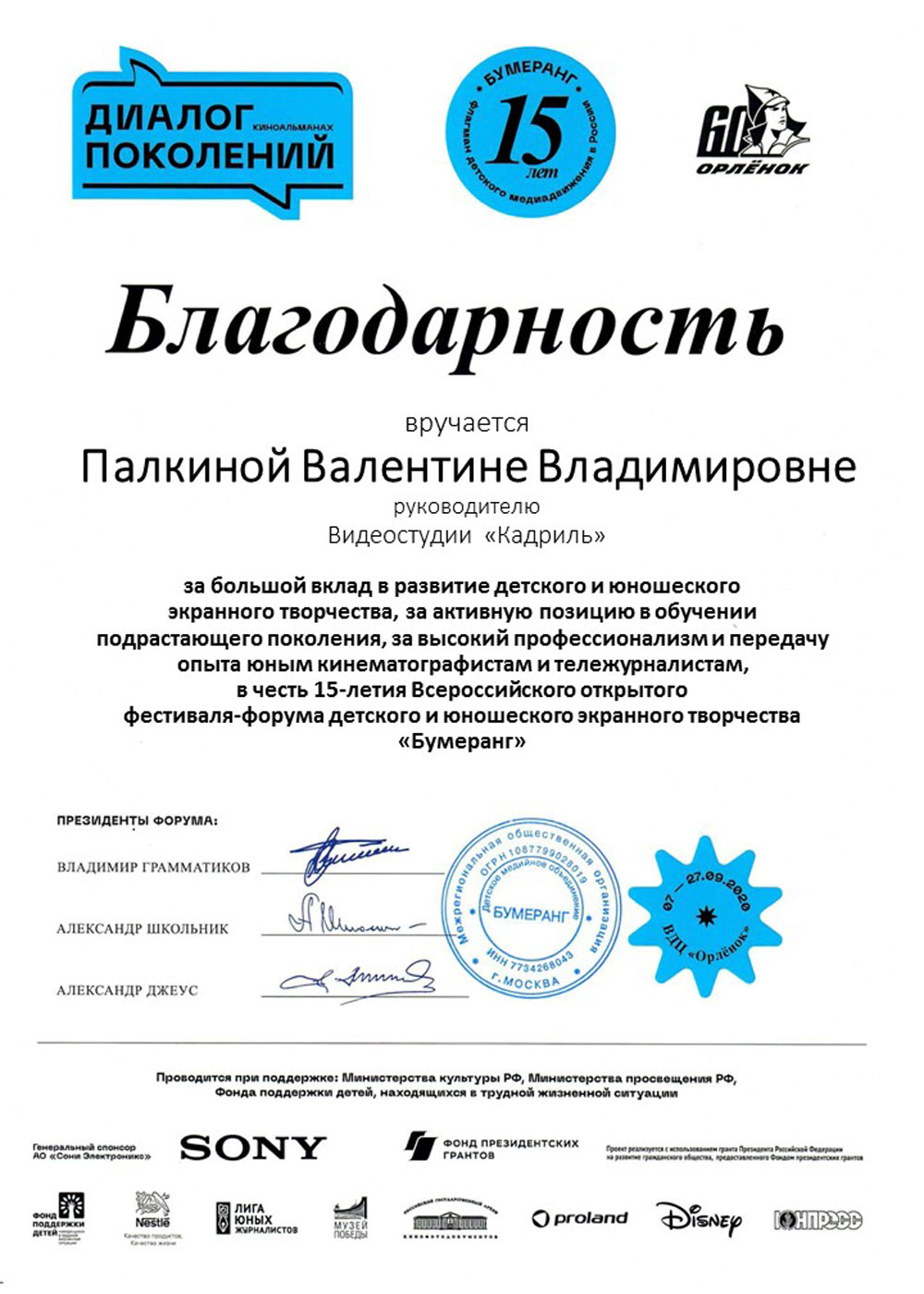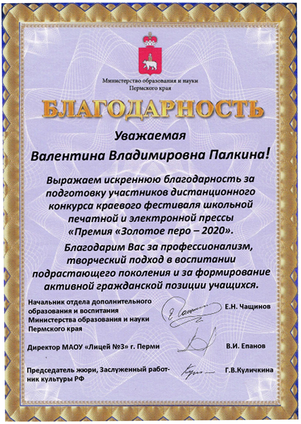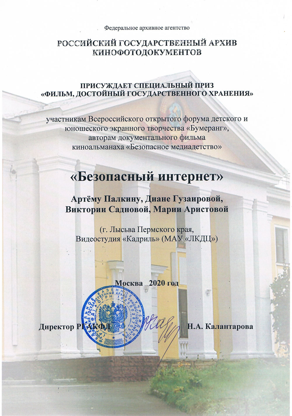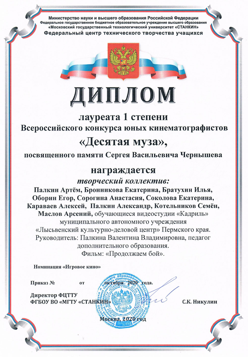 Награды 2020