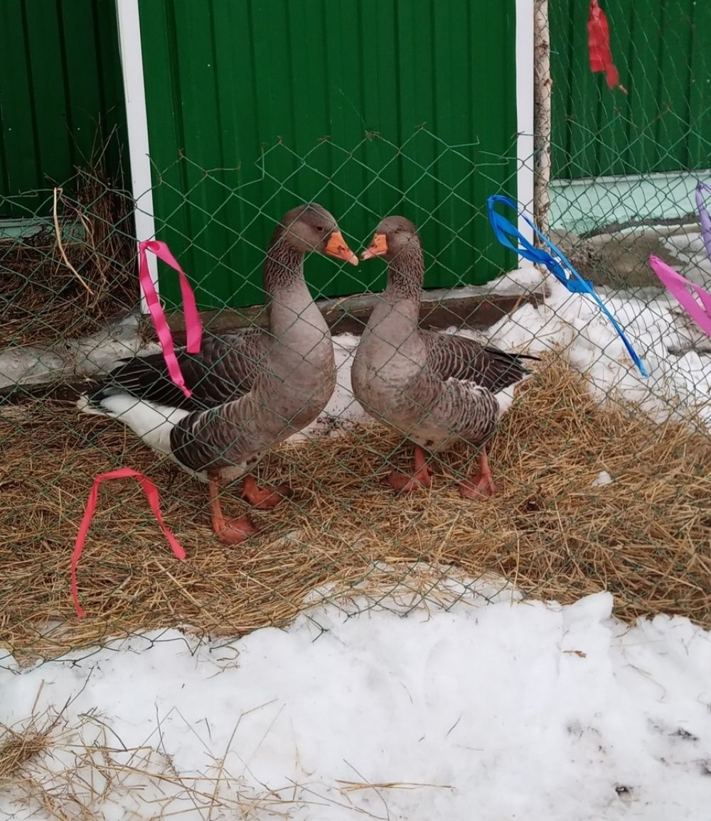 За всем этим наблюдали как гуси на баннерах, так и живые — гусак с гусыней.
