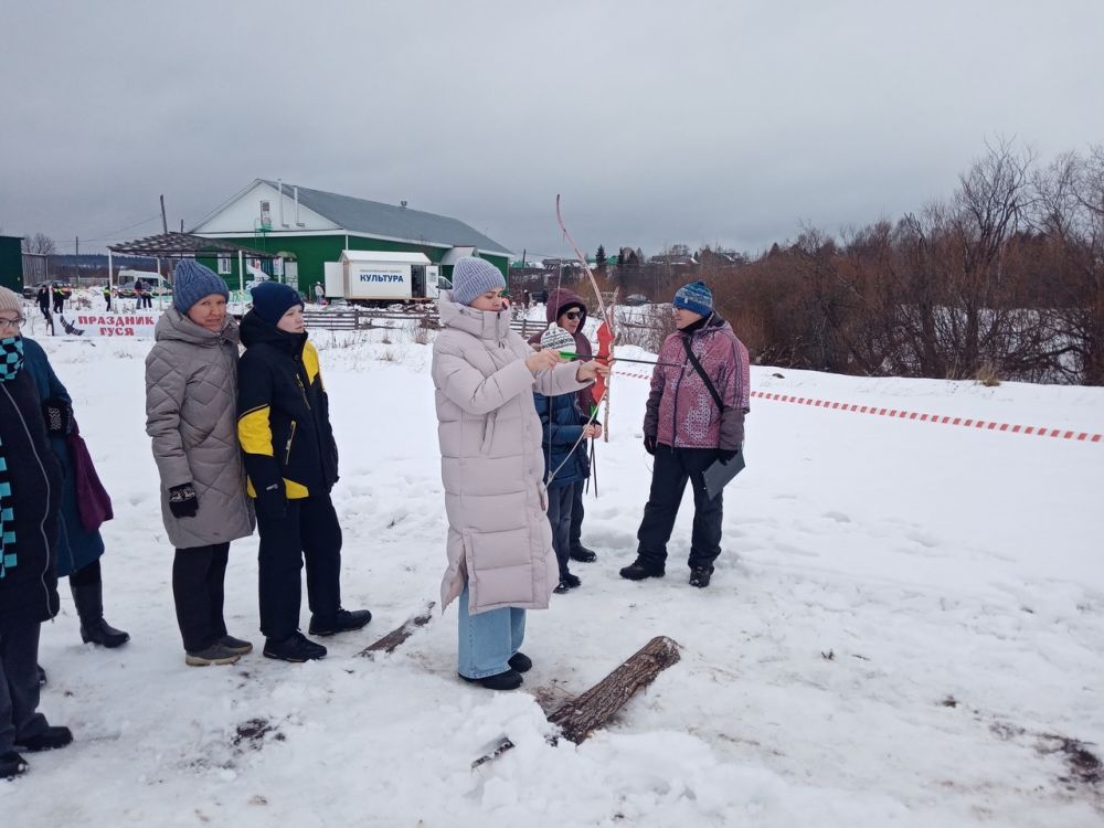 На предклубной площадке можно было потренироваться в «ЭТНО-ТИРЕ». Желающие, которых было очень много, стреляли из лука, соревновались в метании топора и лопаты.