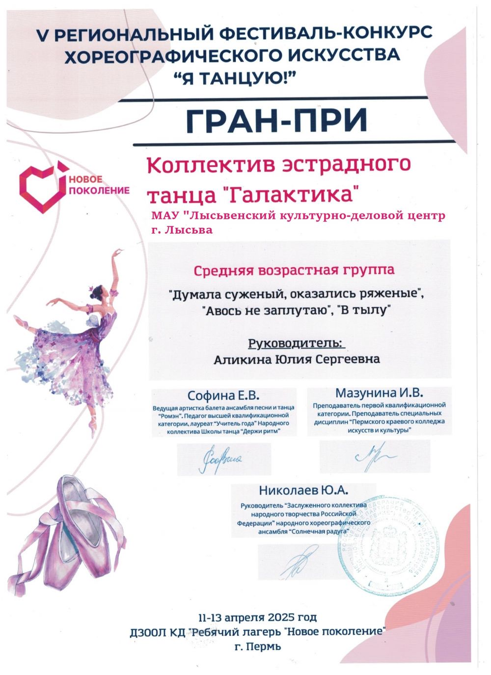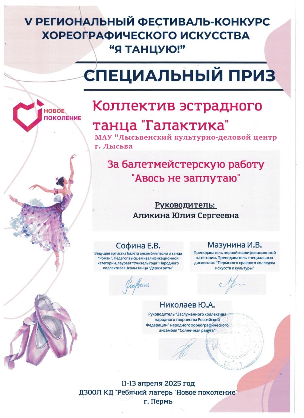 Коллектив эстрадного танца «Галактика» и педагог Юлия Сергеевна Аликина благодарны администрации ЛКДЦ, а также родителям, которые всегда поддерживают участников в поездках.