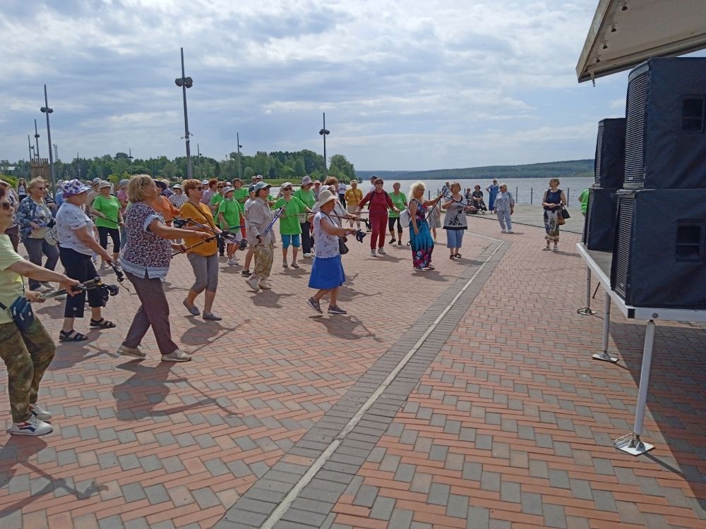 В рамках юбилейного Дня рождения города (240 лет! Шутка ли?) на Шаховской набережной состоялся праздник скандинавской ходьбы для ветеранов Лысьвенского муниципального округа.