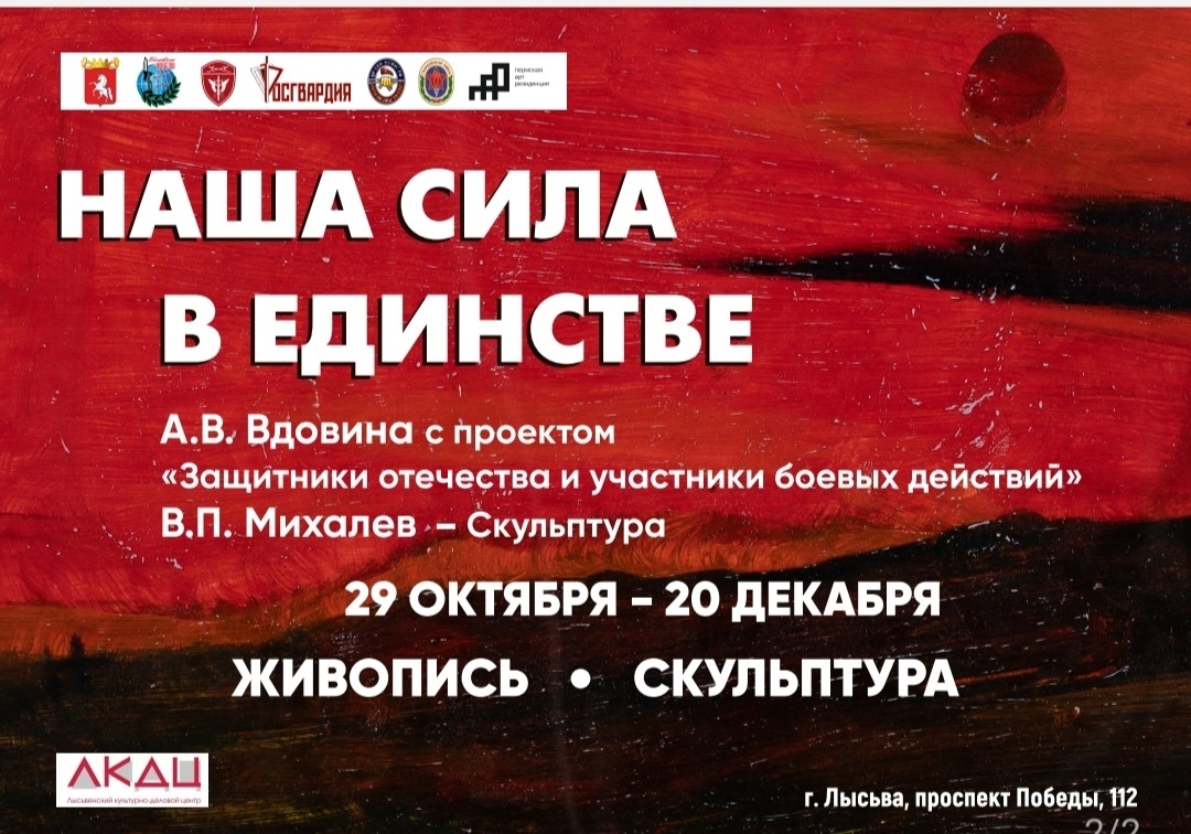 В ЛКДЦ открылась масштабная выставка живописи Анны Вдовиной (г. Пермь) и скульптуры Виктора Михалева (Донбасс) «Защитники Отечества и участники боевых действий» в рамках проекта «Наша сила в Единстве».