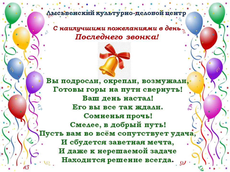 Поздравляем с окончанием учебного года, с Последним звонком!
