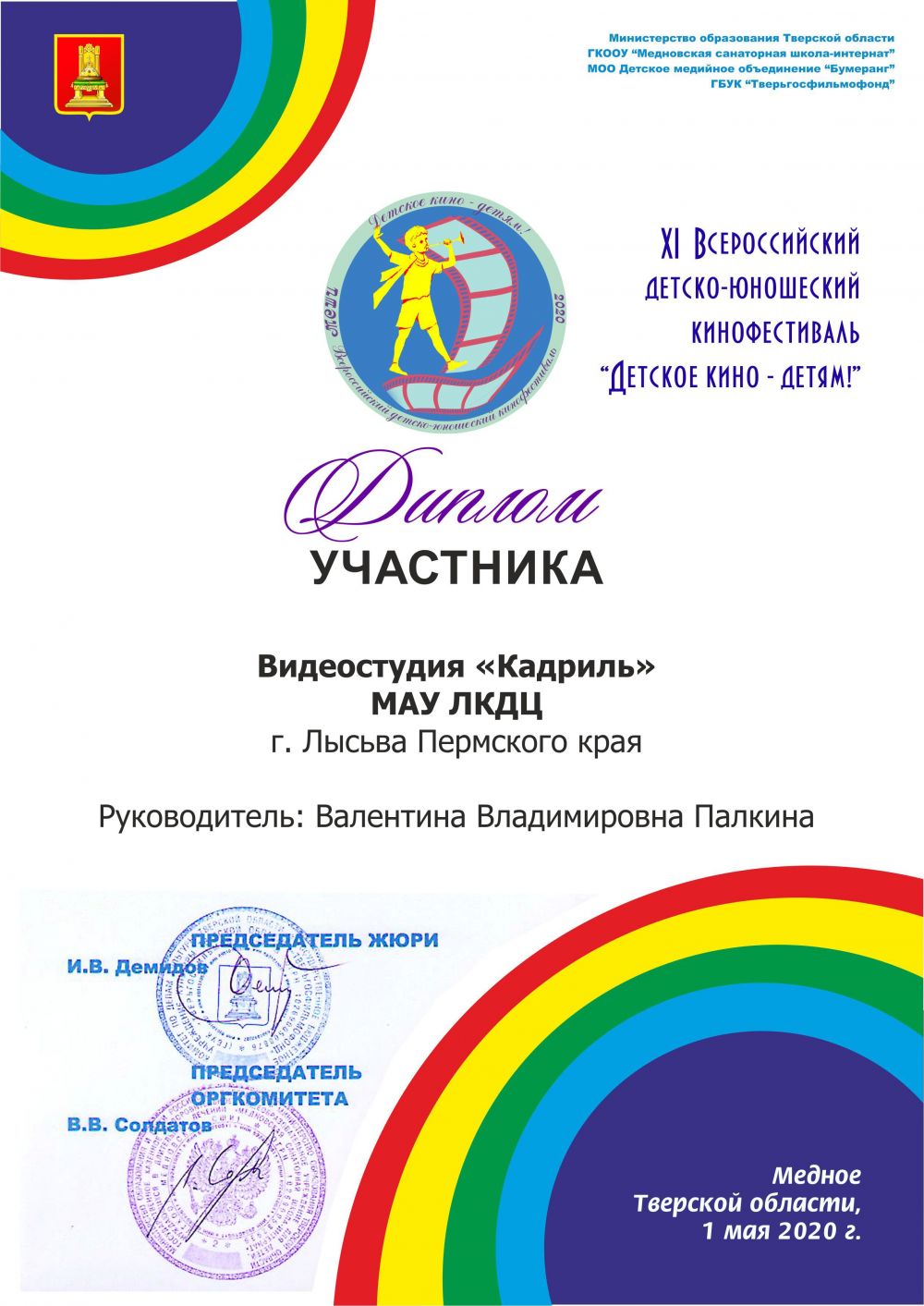 В Тверской области состоялся Всероссийский фестиваль «Детское кино — детям», куда видеостудия «Кадриль» ежегодно отправляет свои работы.