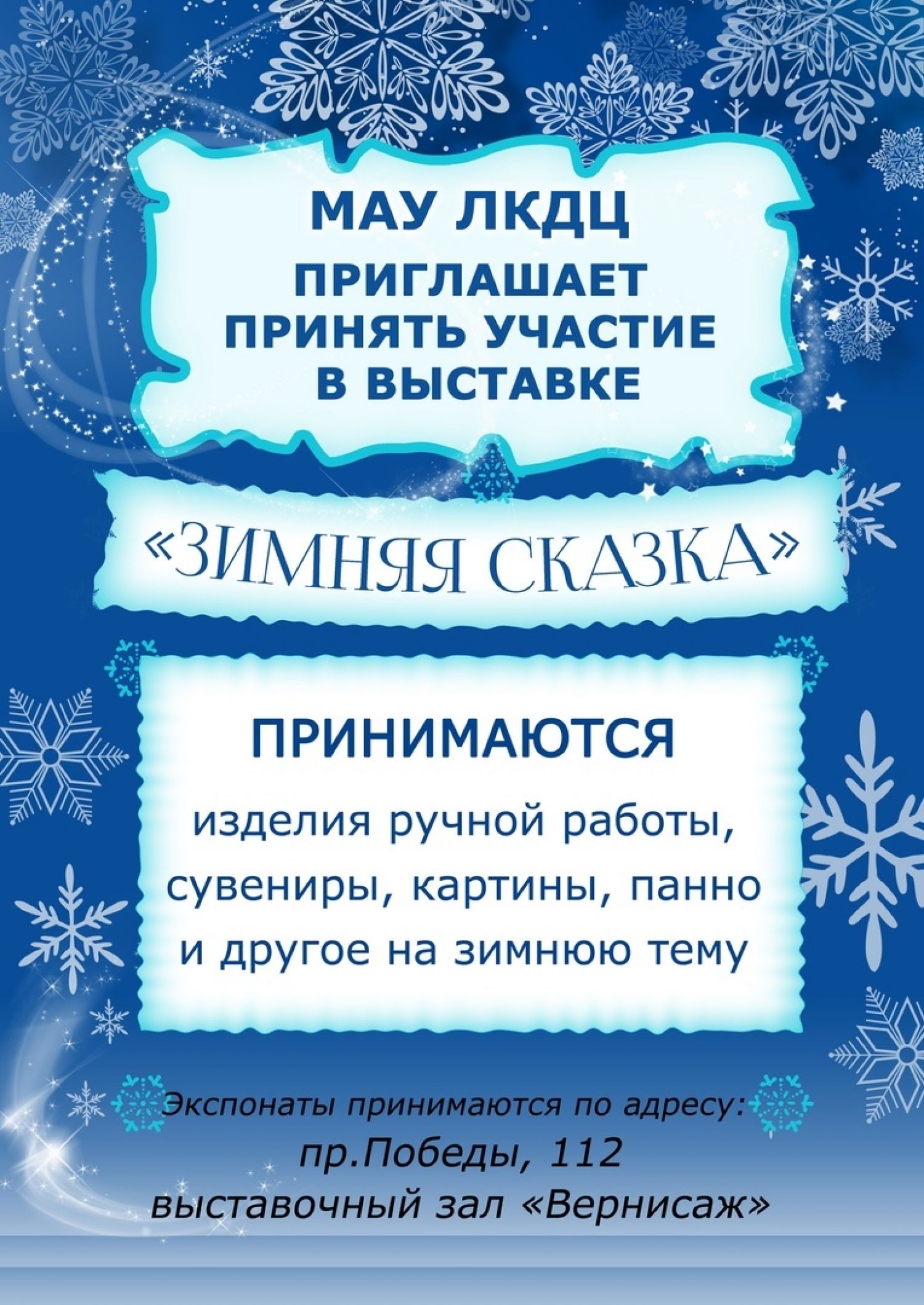 Выставочный зал " Вернисаж" приглашает вас принять участие в ежегодной выставке «Зимняя сказка», а также, в рамках работы выставки-ярмарки «Вьюговей», поучаствовать в конкурсе по следующим номинациям: