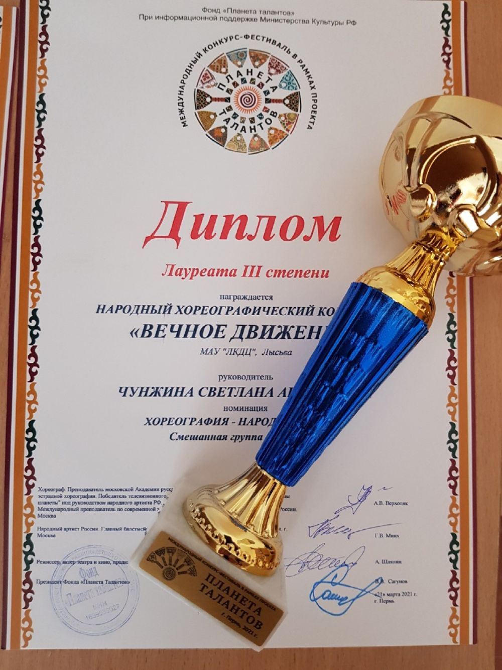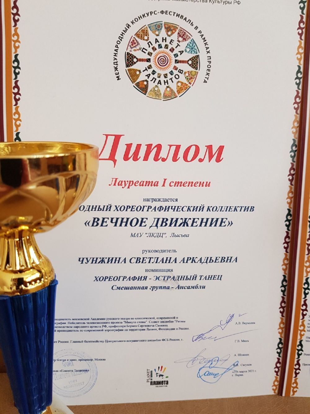 Поздравляем народный хореографический коллектив «Вечное движение» под руководством С.А. Чунжиной с успешным выступлением на Международном конкурсе-фестивале «Планета талантов»!