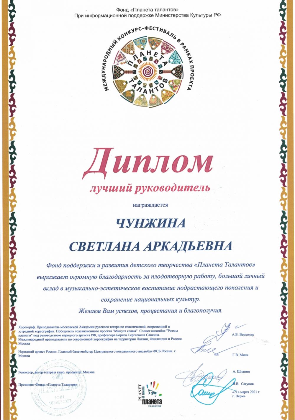Светлана Аркадьевна удостоена диплома «Лучший руководитель».