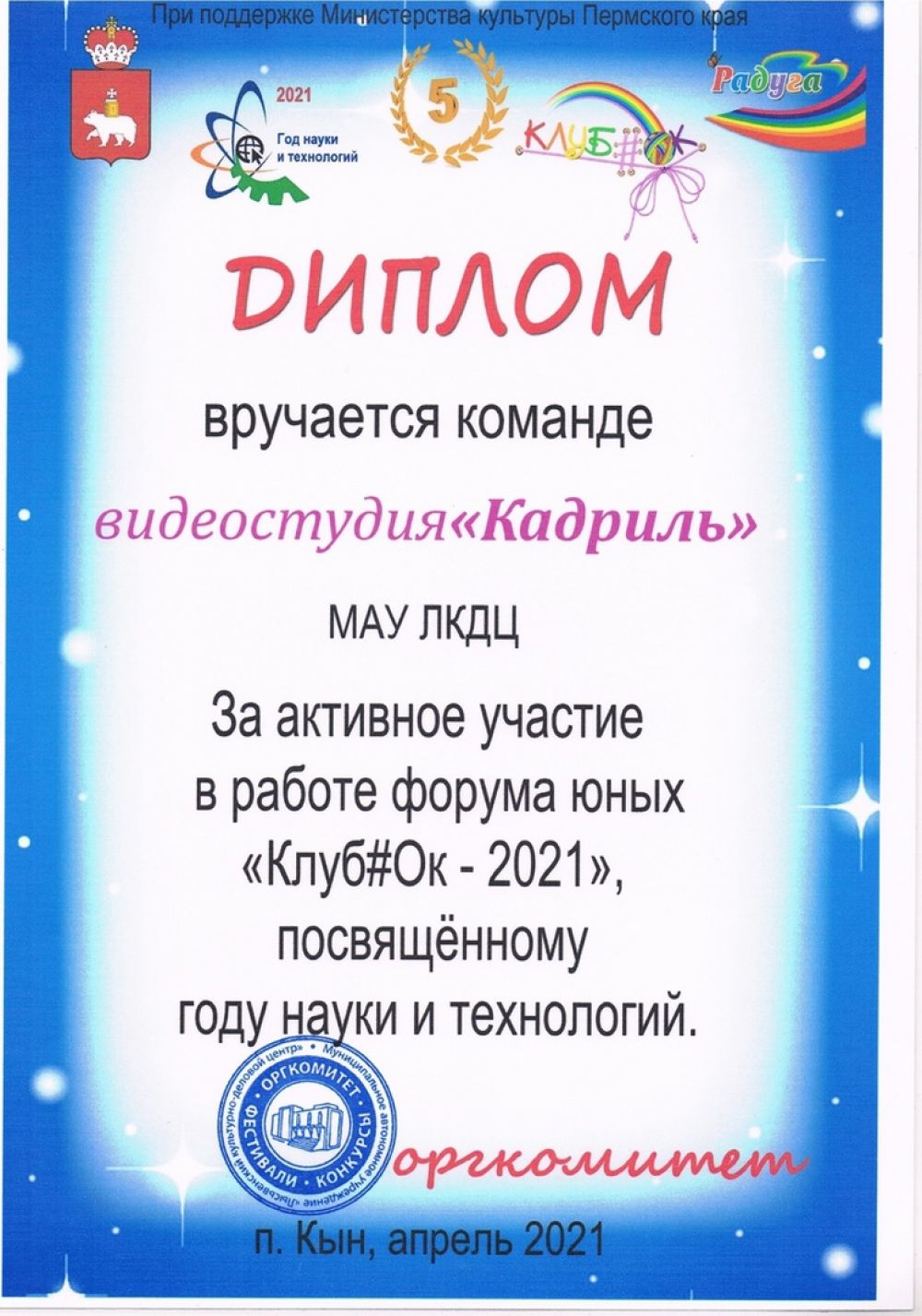 Участники народного коллектива видеостудия «Кадриль» съездили на выходные (17-18 апреля) в посёлок Кын, на замечательный Форум юных "Клуб#Ок"!