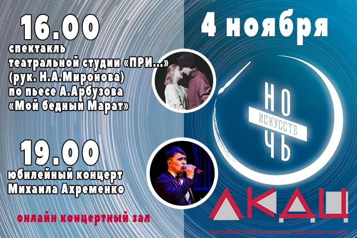 Онлайн Всероссийская акция «Ночь искусств». Спектакль театральная студии «При» (руководитель, народная артистка, Наталья Миронова) по пьесе А. Арбузова «Мой бедный Марат».