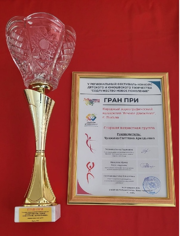 Народный хореографический коллектив «Вечное движение» получили высшую награду – ГРАН-ПРИ V регионального фестиваля-конкурса «Содружество. Новое поколение», хореография, в старшей возрастной группе.