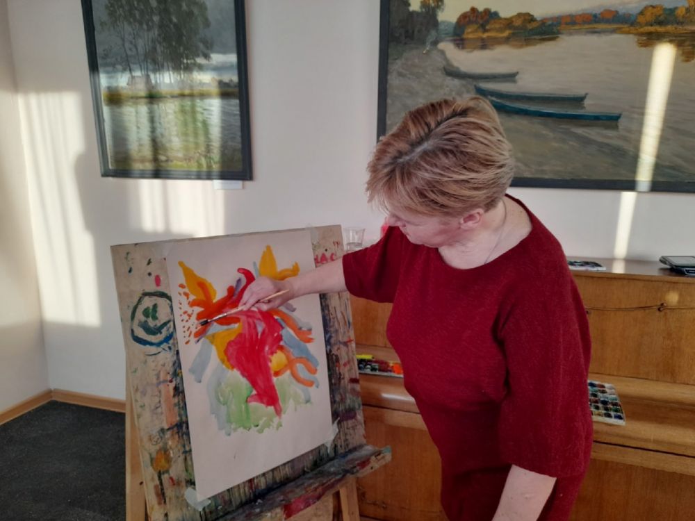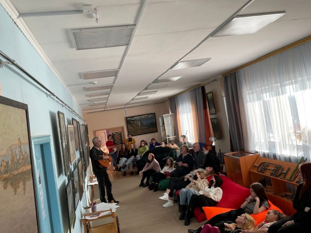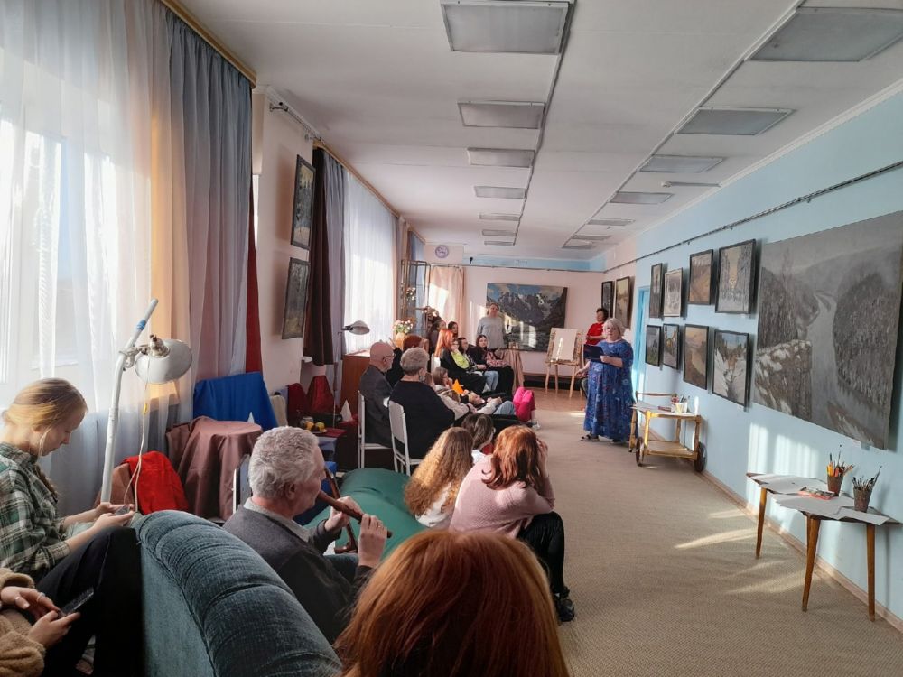 Разбираясь в поставленных вопросах, рассуждая, анализируя выбирая любимые цвета и пребывая в том или ином состоянии цвета для создания общей живописно-абстрактной картины, эмоционально заряжали зал и будущее полотно, звуками флейты, прочтением своих стихов, исполнением песен под гитару.