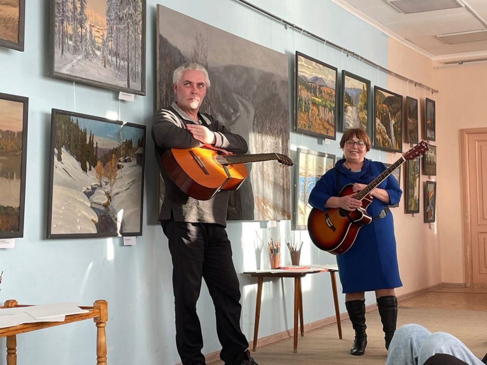 А сподвигло нас на эту встречу — выставка пермского художника Константина Собянина «Наедине с природой», его уникальная разноплановая личность. Грани его творчества соединяют в себе живопись маслом,картины пастелью,стихи собственного сочинения, любовь к музыке и написание музыкальных произведений.