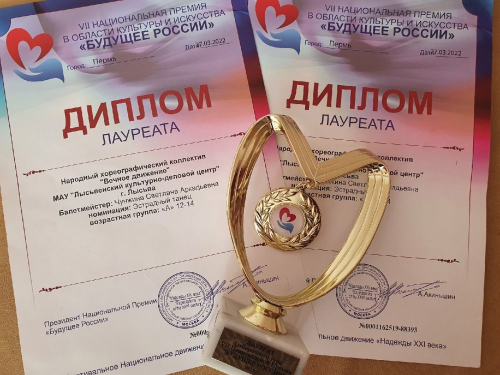 27 марта народный хореографический коллектив «Вечное движение» (руководитель Чунжина Светлана Аркадьевна) приняли участие в региональном отборочном туре 7 Национальной Премии «Будущее России», созданной при поддержке Администрации Президента Российской Федерации.