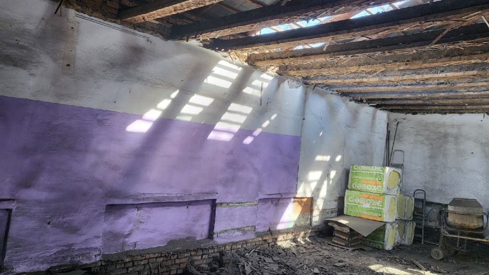 В настоящее время уже проведены работы по демонтажу полового покрытия в здании, и подрядчик приступил к работам по демонтажу чердачного перекрытия и потолков.