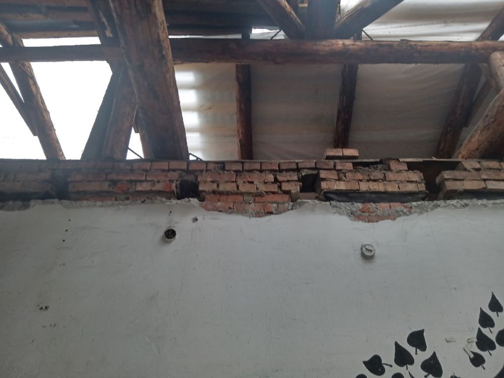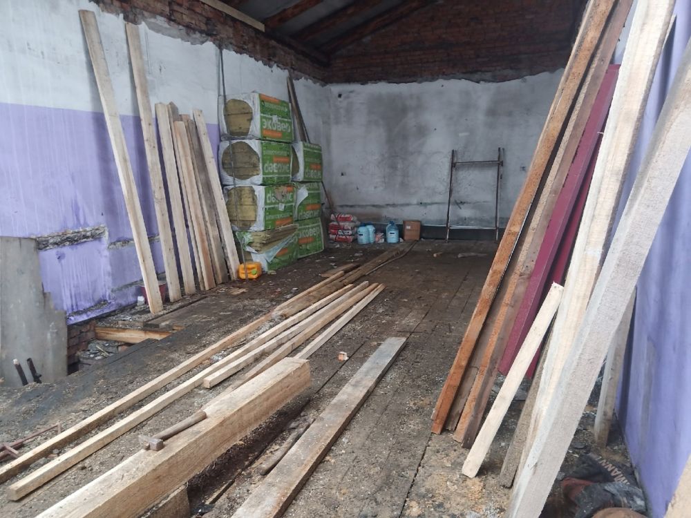 Произведен демонтаж потолочных балок. Заменено 30 процентов обрешетки крыши, ведется монтаж кровли.