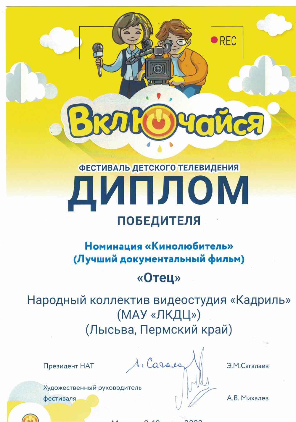 Народный коллектив видеостудия «Кадриль» Лысьвенского культурно-делового центра не остался в стороне от такого значимого события и представил на этот фестиваль документальный фильм «Отец».
