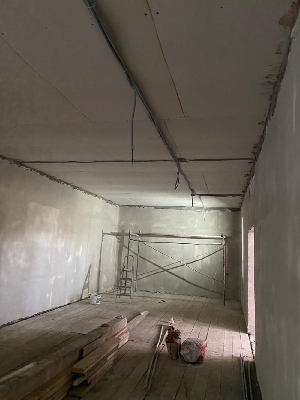 На предстоящую неделю запланирована чистовая отделка внутри всех помещений здания, установка подвесного потолка «Байкал» и монтаж противопожарной двери запасного выхода.