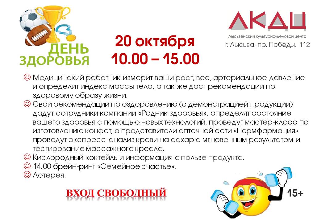 20 октября в стенах Дворца состоялся традиционный праздник «День ЗДОРОВЬЯ!». В этом году в фойе первого этажа ЛКДЦ на нескольких площадках участники праздника на деле доказали, что наше здоровье в наших руках.
