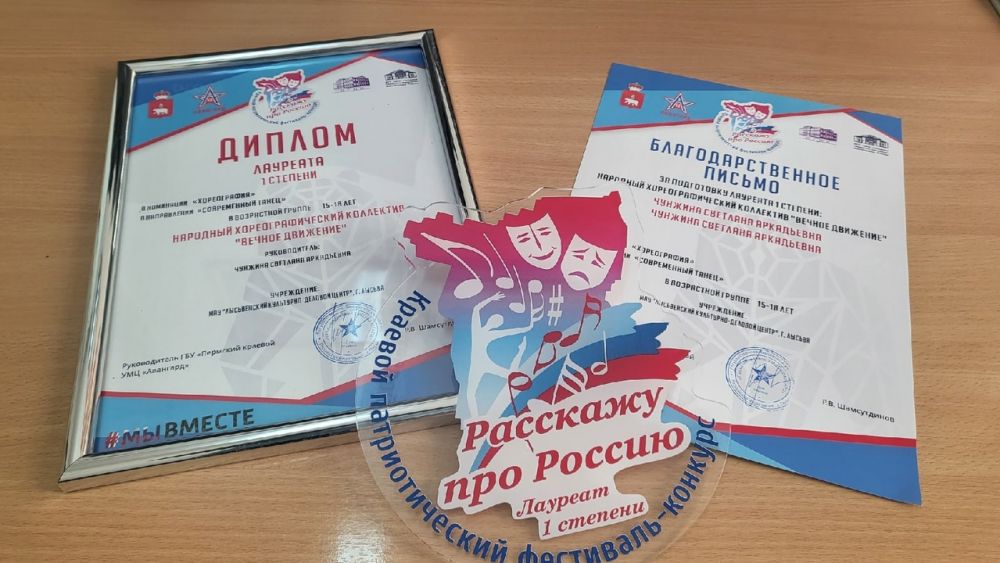 Наш Народный хореографический коллектив «Вечное движение» стал Лауреатом 1 степени в номинации «Хореография», в направлении «Современный танец». Руководитель Светлана Чунжина была отмечена Благодарственным письмом.