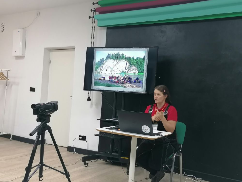 Пермский край, Лысьву и ЛКДЦ представляла руководитель народного коллектива видеостудия «Кадриль» Валентина Владимировна Палкина. Она рассказала коллегам о том, как организовать киноэкспедиции со школьниками. Благо, опыт у видеостудии в этом очень большой. И пригласила педагогов с воспитанниками приехать в Лысьву летом 2023 года для съёмок блогов.