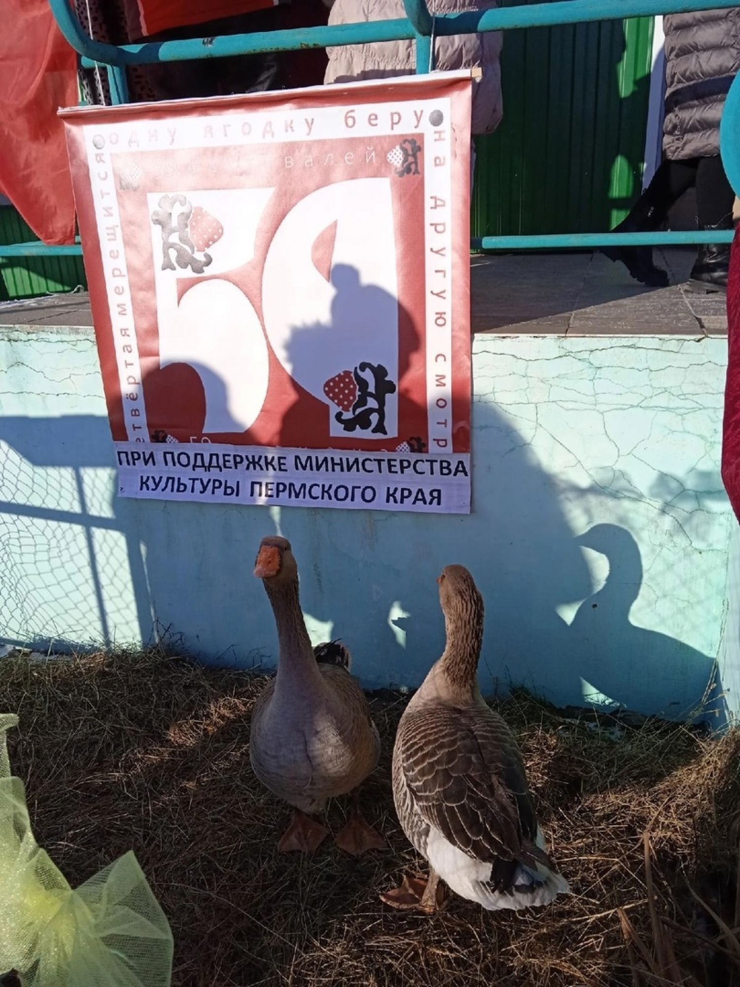 — Праздничный концерт и подведение итогов онлайн-флешмобов, итогов Конкурса поделок на тему «Гусь», награждение участников «Лавки» и десяти лучших гусеводов Лысьвенского ГО. И все это прошло под инсталляцией «Гуси-лебеди». На сцене блистали как местные артисты, так и самодеятельные артисты соседних сил. Спасибо им! Отдельная благодарность приглашенному коллективу — ансамблю «Умырзая» Березовского ДК!