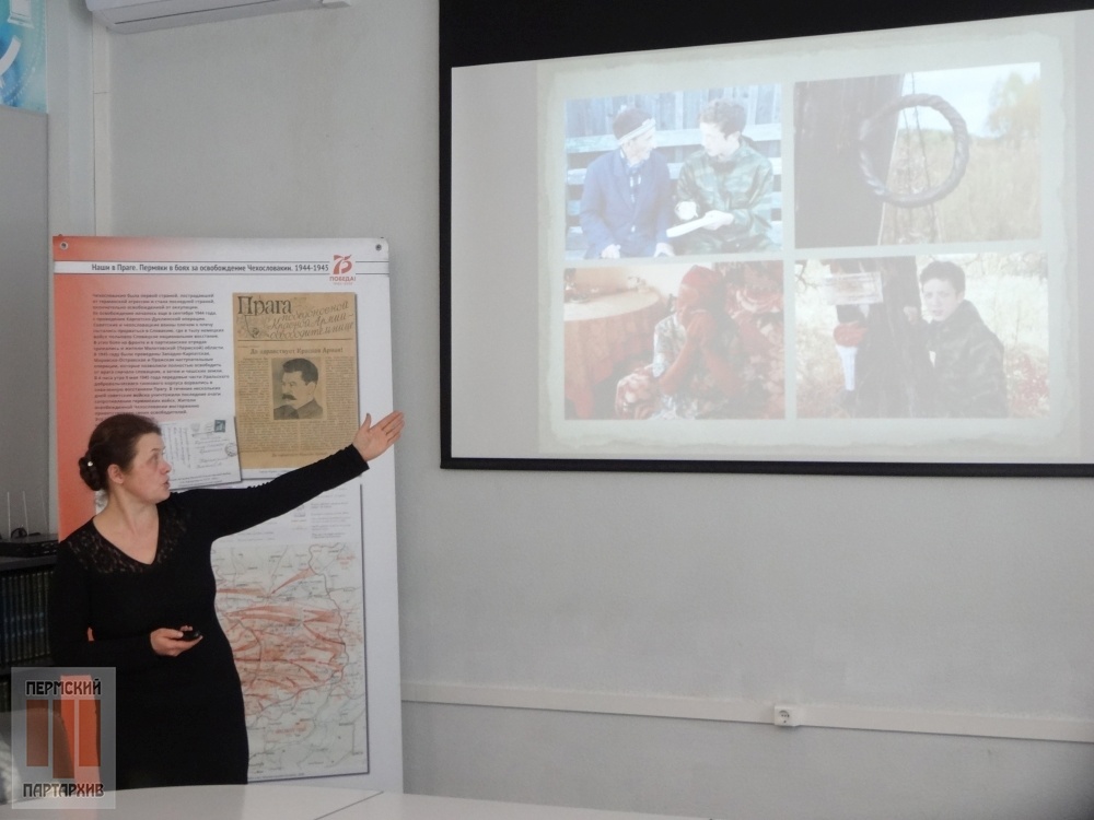 После обеда педагоги и их воспитанники разошлись по разным секциям. Детей пригласили посмотреть документальный фильм Елены Порошиной и Дмитрия Лобанова «Пермь-Прага». Фильм, которого пока нет в свободном доступе, предлагает зрителю событийный видеоряд об освобождении Чехословакии, об обычной жизни, которая не переставала идти и во время Великой Отечественной войны: люди влюблялись, женились, писали друг другу письма… После просмотра юные исследователи истории могли пообщаться с авторами фильма.