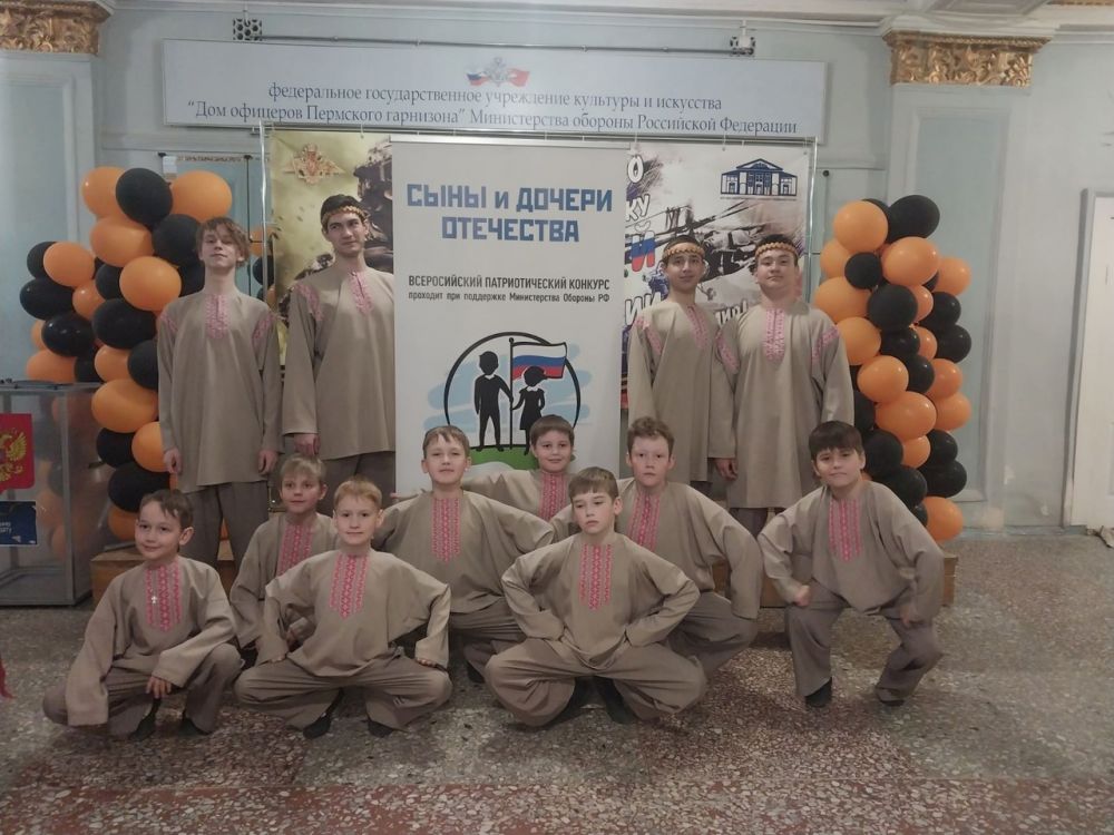 13 мая в Перми проходил отборочный этап Всероссийского патриотического фестиваля «Сыны и Дочери Отечества», в котором наш коллектив принимал участие. Три заявленные номера – «Ехал Кузя», «Казачий пляс», «Русичи» получили Лауреата 1 степени! 3 золота , 3 победы! А ещё сертификат финалиста, и наш коллектив приглашен в качестве участника, на заключительный этап фестиваля – Гала-концерт, который пройдет в ноябре месяцев г. Москва.