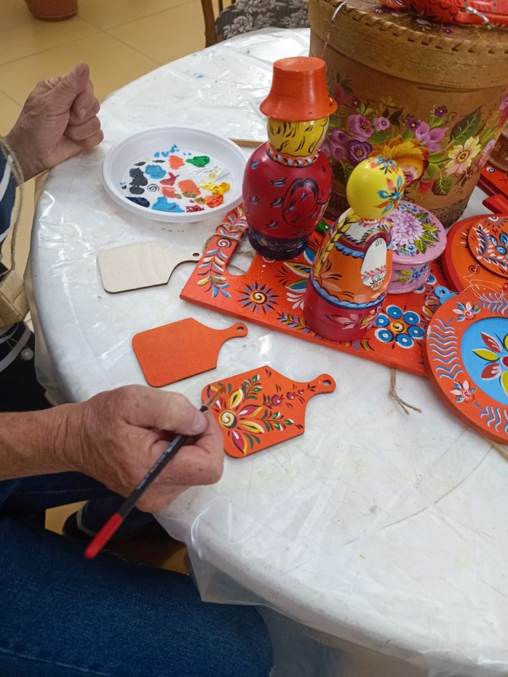Мастера прикладного творчества – Т. Бояринцева (роспись по дереву), Е. Бурылова (работа с берестой), Т. Колодкина (набойка по ткани), И. Ложкина (техника валяния), Н. Южанина (работа с глиной).