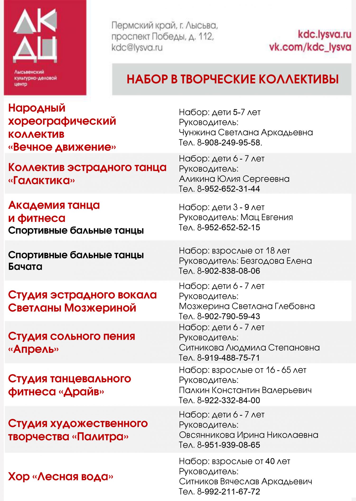Вокал, танцы, хореография, фитнес, художественное творчество ждут вас в ЛКДЦ!
