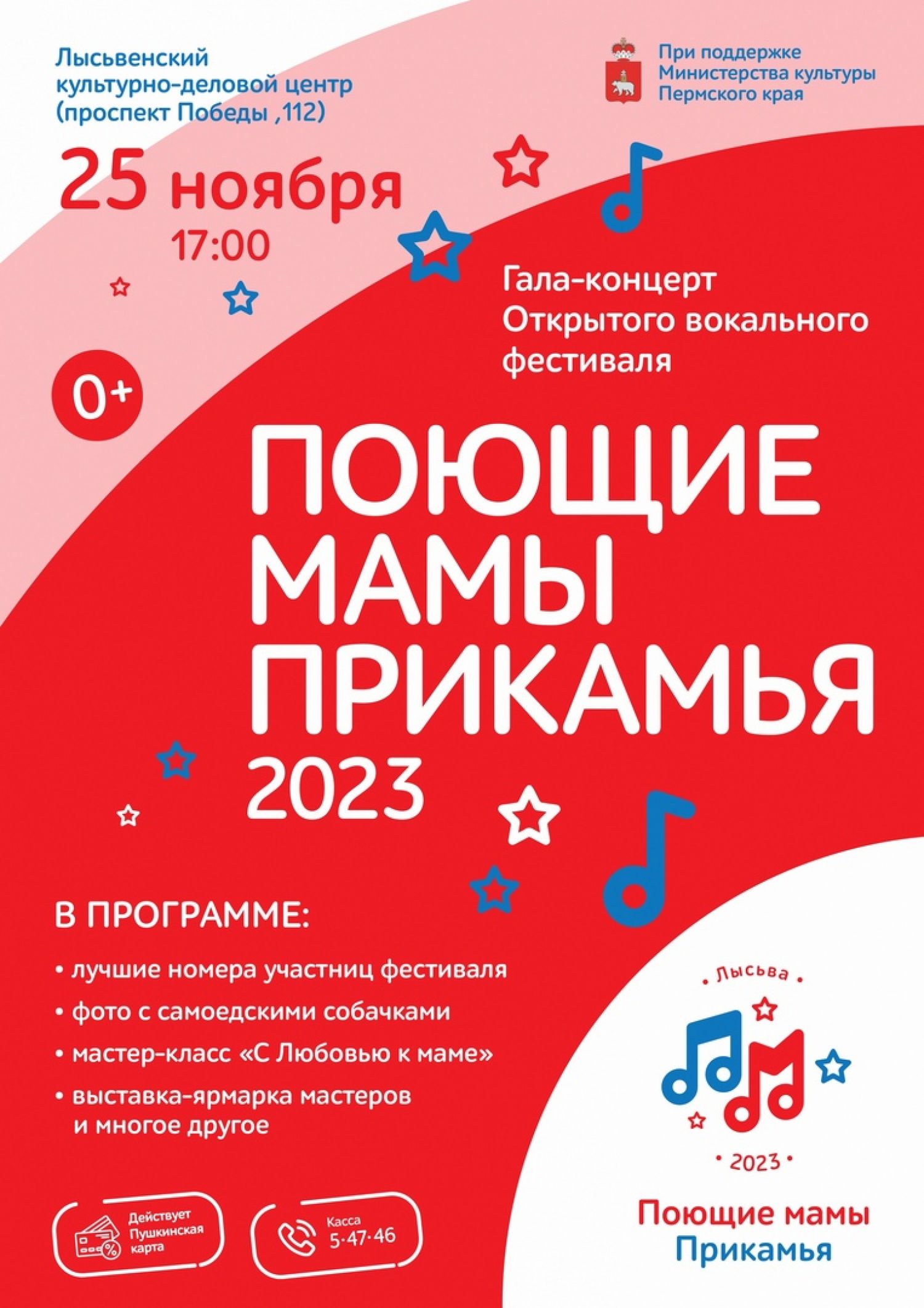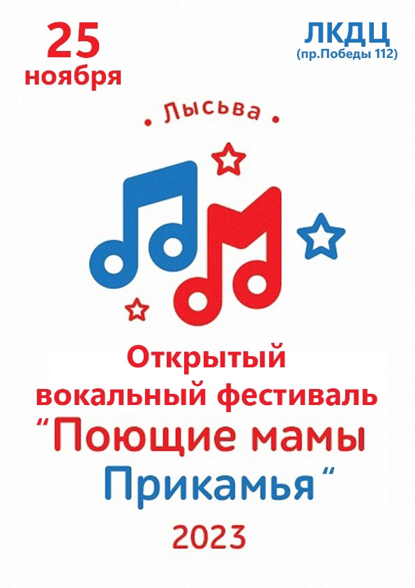 25 ноября 2023 г. в Культурно-деловом центре г. Лысьве при поддержке Министерства культуры Пермского края , ГКБУК «Центр по реализации проектов в сфере культуры» состоится Открытый вокальный фестиваль «ПОЮЩИЕ МАМЫ ПРИКАМЬЯ»