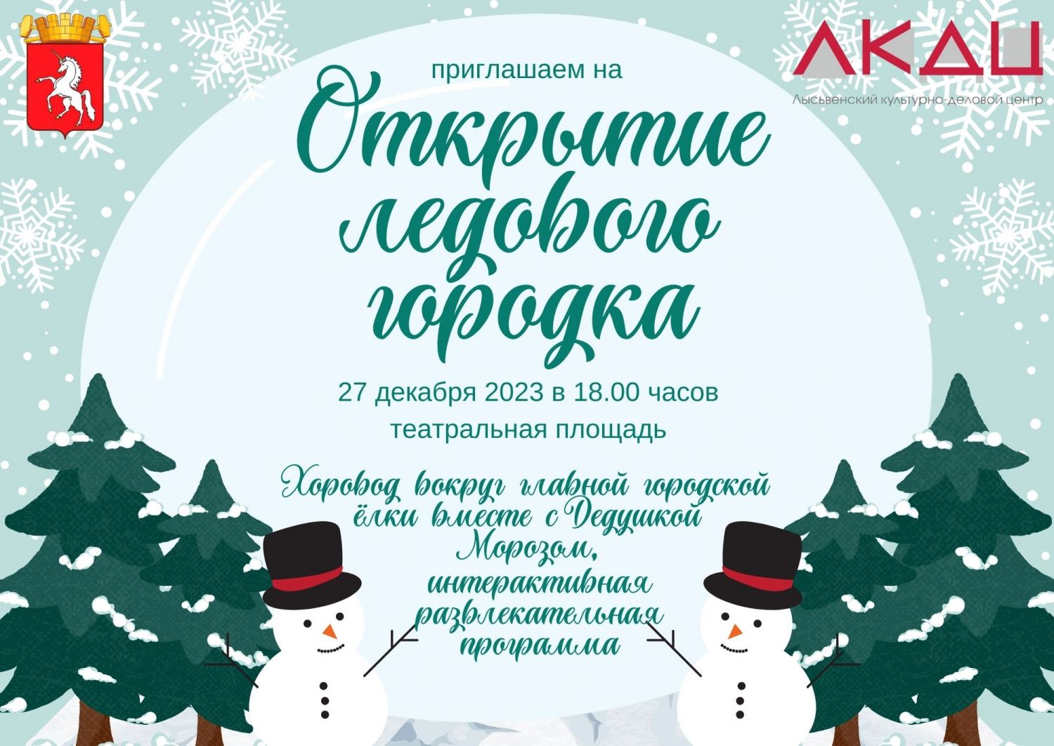 На праздничной программе вместе со Снегурочкой и главным зимним волшебником Дедом Морозом откроем ледовый городок и заведём большой хоровод!