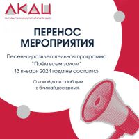 Песенно-развлекательная программа «Поём всем залом» переносится с 13 января 2024 года. О новой дате мероприятия сообщим позже.