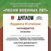 Коллективы ЛКДЦ «Созвучие» и «Созвездие» (руководитель Ольга Валентиновна Андреева) приняли участие в открытом областном онлайн-конкурсе патриотической песни «Песни военных лет».