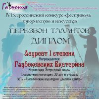 Лауреат 1 степени IV Всероссийского конкурса-фестиваля творчества и искусств «Перезвон талантов