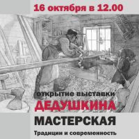 В выставочном зале «Вернисаж» Открытие выставки «Дедушкина мастерская. Традиции и современность» Работа выставки с 16 октября по 15 ноября